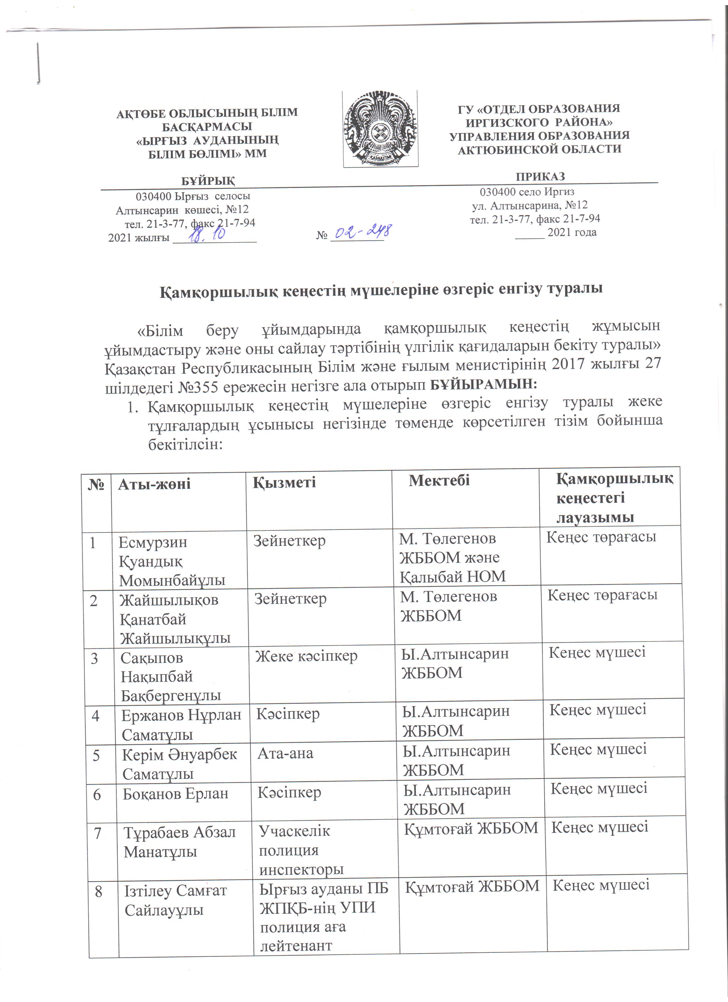 «Ақтөбе облысының білім басқармасы Ырғыз ауданының білім бөлімі» ММ